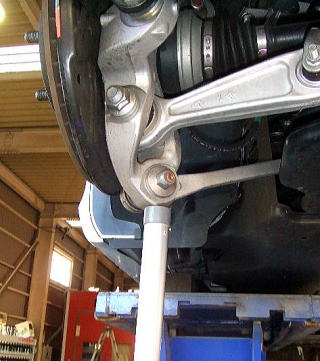 締め付ける時はナックルを、1Gを想定しジャッキ等でナックルを上に上げてから、締め付けて下さい。